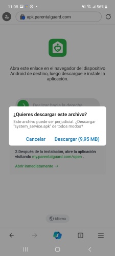 Alternativamente, en el dispositivo que desea supervisar, visite apk.parentalguard.com para descargarlo e instalarlo.