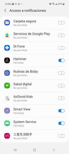 El proceso de configuración se demuestra utilizando el Samsung Note10 como referencia. Los pasos de configuración pueden diferir para dispositivos de otras marcas. Sigue las instrucciones de la app para activar o desactivar correctamente permisos específicos para garantizar datos de monitorización precisos. No hacerlo puede afectar al contenido capturado.
