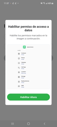 Active los permisos de acceso a los datos haciendo clic en "Activar ahora". Sigue las indicaciones emergentes para establecer cada permiso como permitido. Para la ubicación, elige "Mientras usas la aplicación" y selecciona una ubicación precisa para garantizar un posicionamiento exacto; de lo contrario, podría afectar al seguimiento de la ubicación.