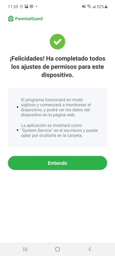 Ha finalizado el permiso de configuración del teléfono. Haga clic en Lo tengo para empezar a supervisar el teléfono.